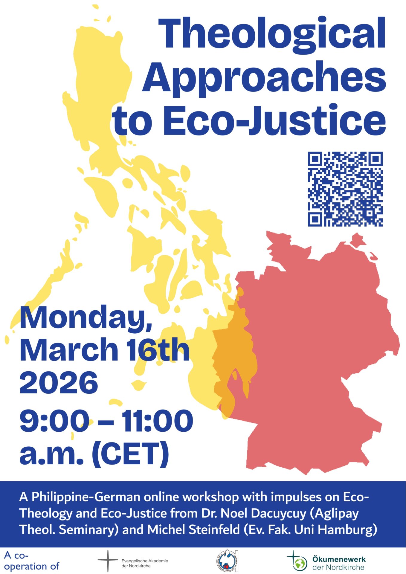 Die Nordkirche ist partnerschaftlich mit der Iglesia Filipina Independiente verbunden. Hier wie dort setzen wir uns verstärkt theologisch mit den Themen Klimakrise und Gerechtigkeit sowie unserer Verantwortung als Christ:innen auseinander. In dem Workshop wollen wir voneinander erfahren und lernen. Wir wollen hören und uns darüber austauschen, was für unseren Einsatz für mehr Klimagerechtigkeit / Eco-Justice und für das Handeln aus unserem christlichen Glauben heraus in den Philippinen und in Deutschland relevant ist. Beiträge von Michel Steinfeld, Doktorand des Fachbereichs Evangelische Theologie der Universität Hamburg, und Dr. Noel Dacuycuy, Dozent am Aglipay Central Theological Seminary in den Philippinen, bieten theologische Grundlagen für Gespräch und Austausch in Kleingruppen und im Plenum.